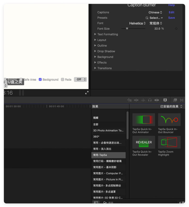 好处是在Motion上制作的插件,保存后可以直接在FCP上出现了,这是我非常喜欢的地方。