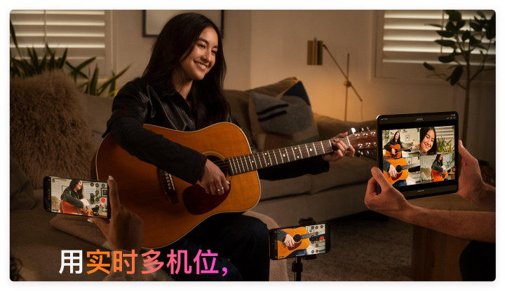 用iPhone的同学,还可以利用iPad,来实现多机位拍摄,可以自动同步拍摄的素材。